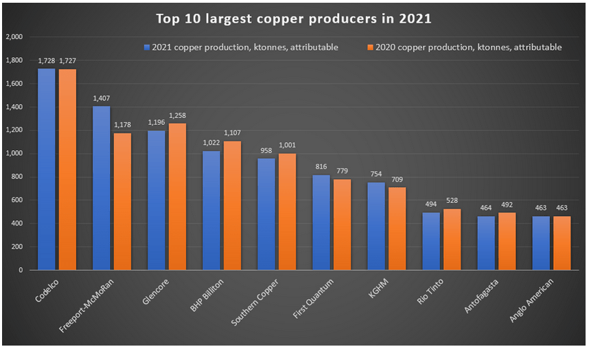 SCCO is one of the largest copper producers in the world. Although 2022 numbers are not yet in the books, SCCO was the 5th largest global producer of copper in 2021:
