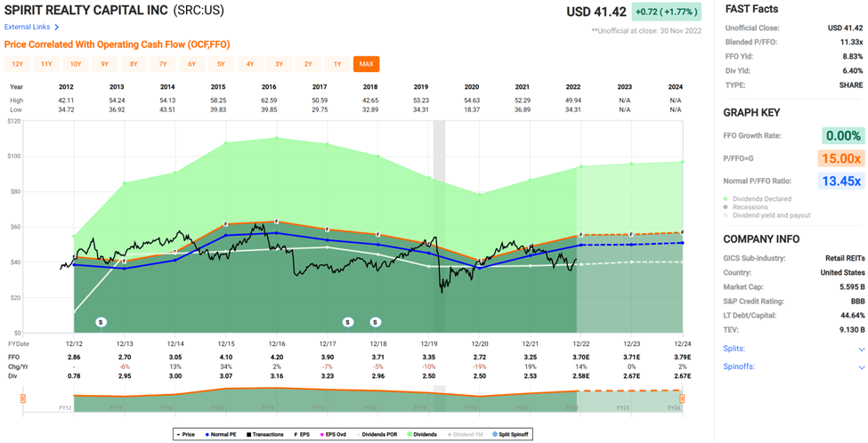 Spirit Realty Capital is a self-managed net lease REIT that owns a large number of properties across the U.S. It’s made great strides in improving its risk profile since its current CEO, Jackson Hsieh, came on board in 2017, spinning off its lower quality properties and improving its balance sheet profile.