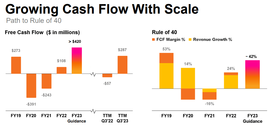 Splunk’s performance showed the value customers place in the company and its team, particularly in the uncertain macro environment. While the company saw a slower pace of cloud migrations and expansions as customers remained cautious with their budgets and reprioritized their investments, demand for Splunk remained strong. RPO bookings were $1.1 billion in the quarter, up 37% year-over-year, and total ARR was $3.47 billion, up 23%. Cloud ARR was also up 46% to $1.62 billion.