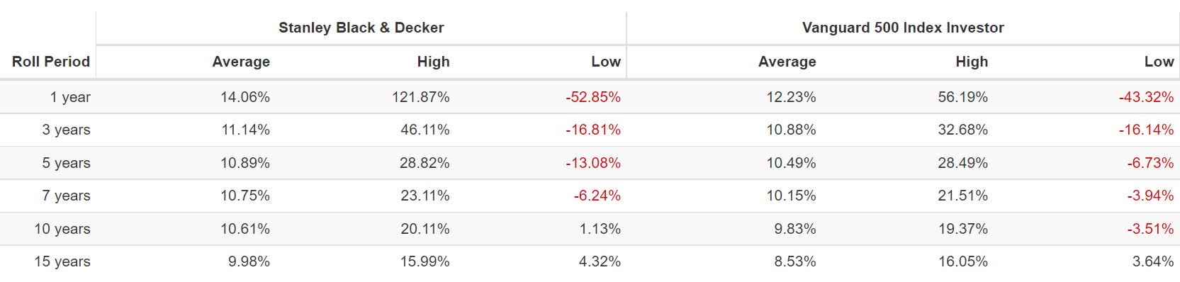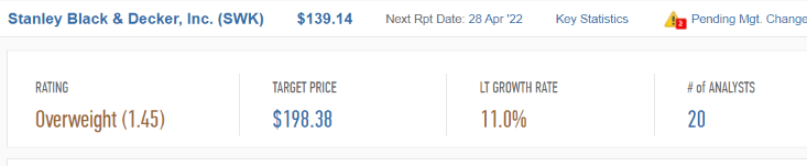 | Stanley Black & Decker | 2.2% | 11% | 13.2% | 9.2% | 6.8% | 10.7 | 1.92 |