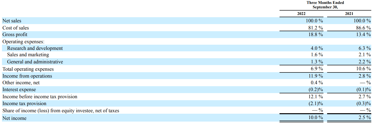 As of September 30, more than 90% of total sales come from the “Server and storage systems” segment [an assembly and integration of subsystems and accessories, and related services], while the other part comes from the “Subsystems and accessories” segment [server boards, chassis, and accessories].