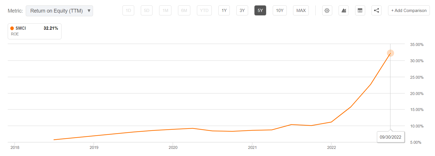 In general, I like the state of the financial part of the company’s business – SMCI is actively growing, expanding, and at the same time is a very profitable company, with ROE (TTM) at above 32%.