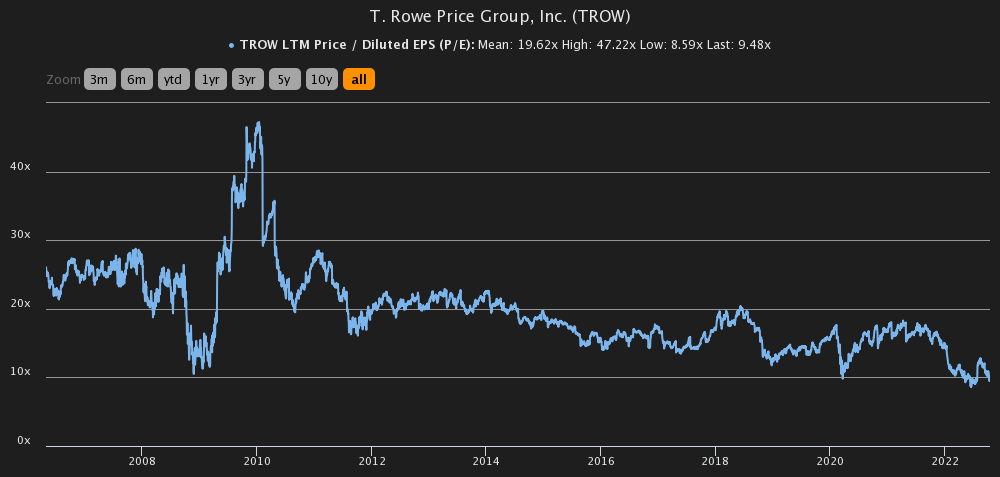 Looking at the current EV/EBITDA, it goes back to the great financial crisis such a low figure. This is not to say that it cannot continue to go down, but if we believe that T. Rowe Price can continue to grow as it has shown over the past decades, then this is an opportunity that may not come again anytime soon.
