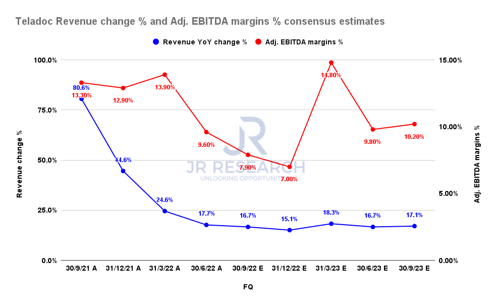 Accordingly, Teladoc posted revenue growth of 17.7% in FQ2 and an adjusted EBITDA margin of 9.6%. However, given the gamut of headwinds, the Street consensus (neutral) indicates further weaknesses through H2’22 before a potential recovery from FY23. Therefore, Teladoc’s challenges could be transitory as it’s hobbled by the macro challenges but expected to improve subsequently.