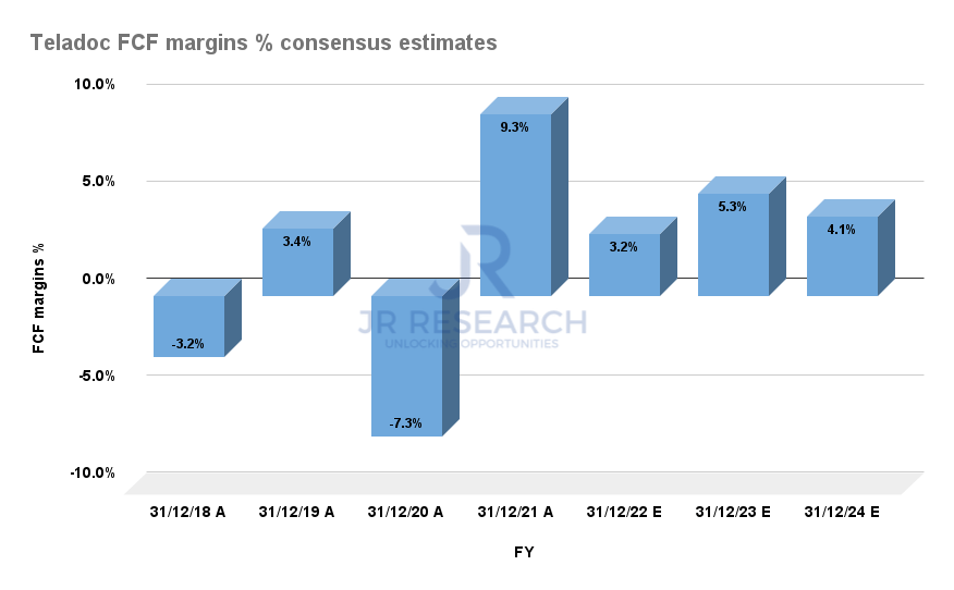 Teladoc FCF margins % consensus estimates (S&P Cap IQ)