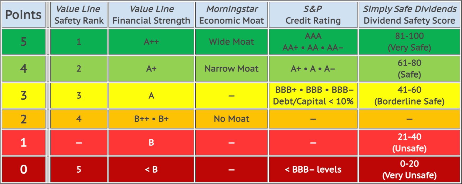 I adopted the DVK Quality Snapshots in 2019 after reading this article by David Van Knapp on high-quality, high-yield DG stocks. This simple yet elegant system provides a quick way to assess the quality of dividend growth [DG] stocks. It employs five widely used quality indicators from independent sources and assigns 0-5 points to each quality indicator, for a maximum of 25 points.
