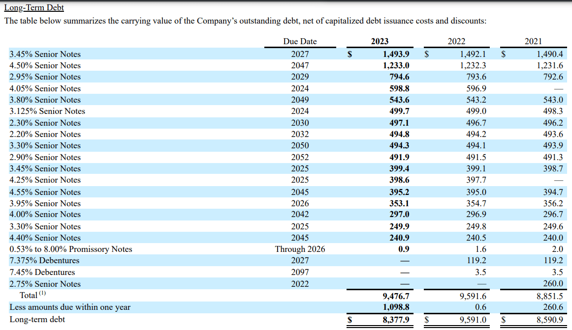 Coming to the question of debt, investors might look at its total outstanding debt of +$10 billion and look at it as a massive burden on its bottom line.