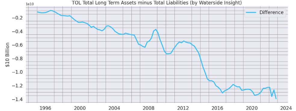 Toll Brothers Long Term Assets vs Liabilities (Calculated and Charted by Waterside Insight with data from the company)