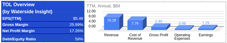 Toll Brothers Financial Overview (Calculated and Charted by Waterside Insight with data from the company)