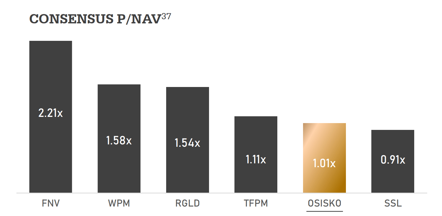 Consensus P/NAV Royalty/Streaming Companies (Osisko Gold Royalties Presentation)
