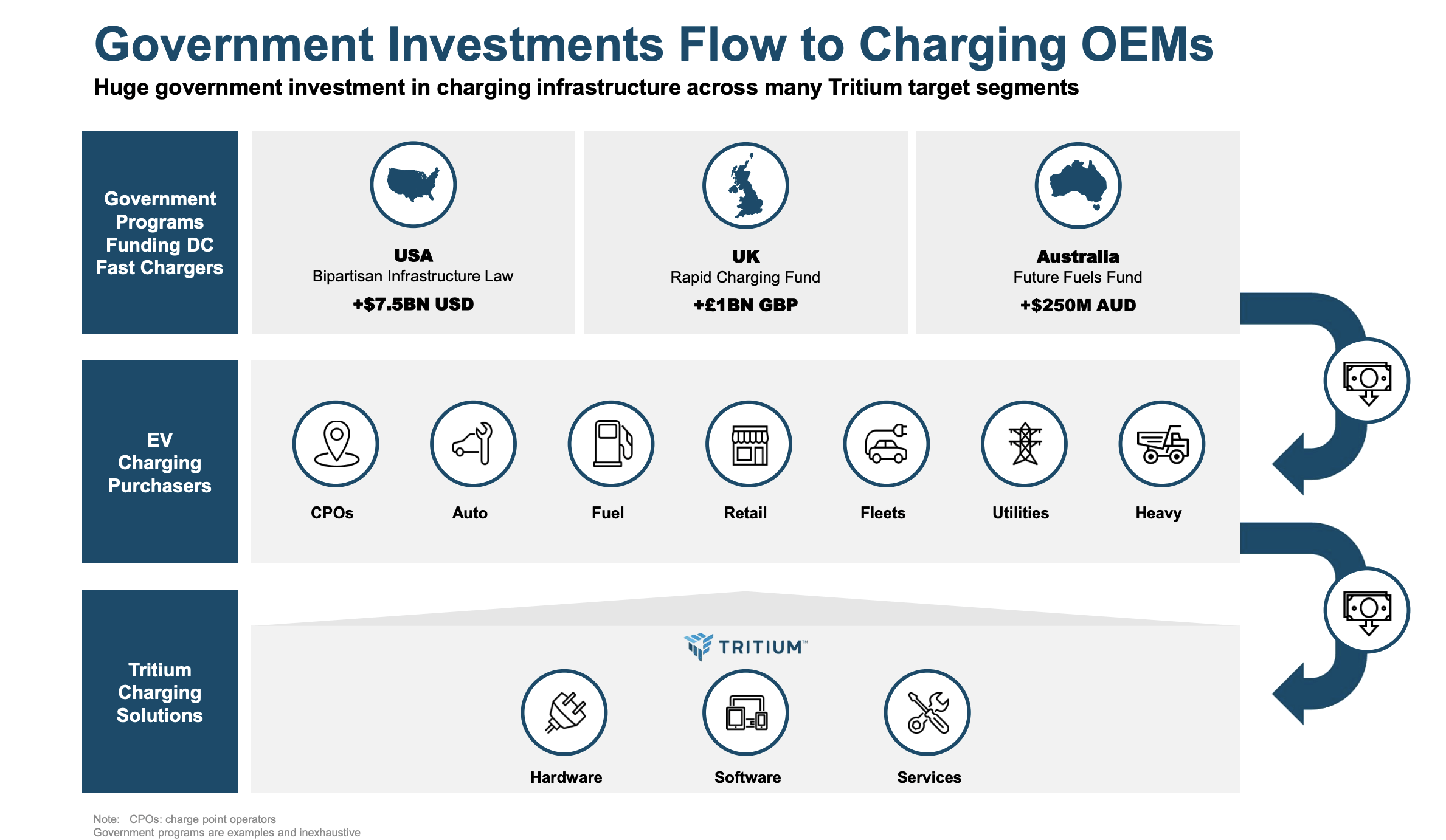 Tritium will see a huge surge in demand for charging stations hardware, but ultimately the hardware demand will peak. The governments around the world are definitely assigning money to build EV charging infrastructure, but one still has to question whether the charging stations actually benefit from tax credits and incentives, or if all of the savings are only passed along to the corporations or government entities buying the charging stations.