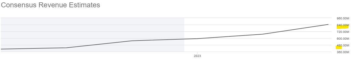 Per the above, be advised that only one analyst offers the 2024 EPS estimate. Still, the forecast is achievable. Revenue will almost double by 2024:
