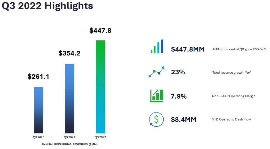 Annual recurring revenues (ARR) were $447.8 million at the end of the third quarter, up 26 percent year-over-year.