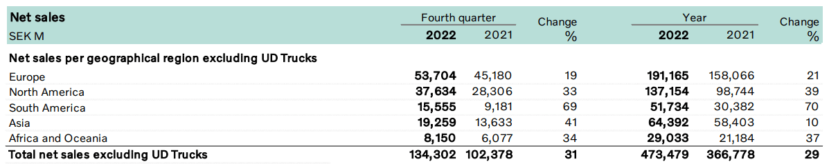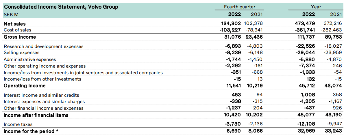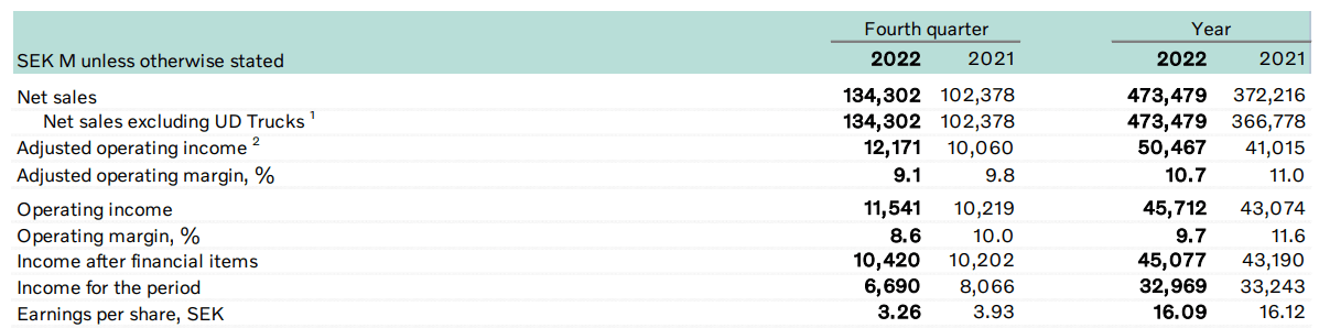 When looking at Volvo Group’s performance for the fourth quarter and full year of 2022, we can see that net sales on a yearly basis are up by 27% on that of last year.