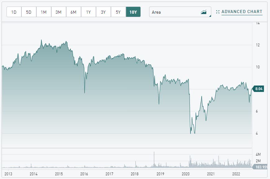 Below is a chart of the Preferred Shares trading in Canadian Dollars.