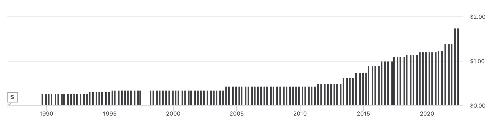 Whirlpool has been committed to return value to its shareholder through dividend payments over the years. The firm has been paying dividends for 32 years consecutively and even growing its dividend continuously in the last 12 years.