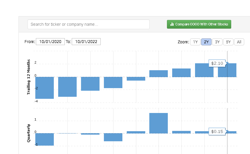 I am justifying my 22x forward P/E by pointing out that Gogo Inc boasts a net income margin of 72.93% and a TTM revenue CAGR of 20.92%. I cannot fully comprehend why Gogo touts a higher net income margin than its gross margin of 67.43%. I cross-referenced Seeking Alpha Quant’s margins for GOGO on Finviz, they are the same.