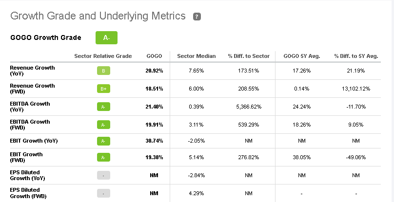 Gogo is outpacing the average 7.65% growth rate of the Communication Services sector. This feat is good enough reason to invest in this company.