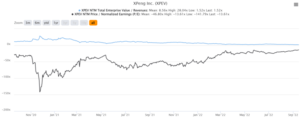 XPEV is currently trading at an EV/NTM Revenue of 1.52x and NTM P/E of -13.61x, lower than its 2Y EV/Revenue mean of 8.56x though massively improved from its 2Y P/E mean of -46.80x. The stock is also trading at $14.56, down -74.20% from its 52 weeks high of $56.45, nearing its 52 weeks low of $14.50. It is evident that Mr. Market is more bearish than expected, given the massive plunge of -38.28% since our previous analysis.