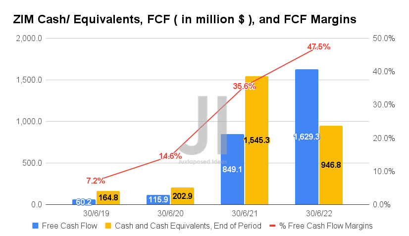 For now, ZIM appears well poised for growth and expansion ahead as well, with excellent cash and equivalents of $946.8M on its balance sheet. This is on top of the management’s deft deleveraging from FQ4’20 levels of $519.47M to $164.8M in FQ2’22 and the massive growth in the net PPE assets from $1.53B to $5.76B at the same time. Stellar indeed.